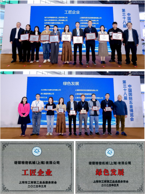 2025年3月24日,上海市工商聯(lián)工業(yè)品服務(wù)商會(huì)在國(guó)家會(huì)展中心舉辦“內(nèi)外貿(mào)融合發(fā)展——鏈通天下”2025 生產(chǎn)性互聯(lián)網(wǎng)服務(wù)平臺(tái)創(chuàng)新發(fā)展大會(huì),會(huì)上誠(chéng)邀國(guó)策智庫(kù)專家及業(yè)內(nèi)企業(yè)分享新質(zhì)生產(chǎn)力機(jī)遇和DeepSeek 助力 AI 大模型服務(wù)等精彩內(nèi)容。同期,經(jīng)過層層選拔與公開評(píng)審,諾霸精密機(jī)械(上海)有限公司蟬聯(lián)了“綠色發(fā)展”獎(jiǎng),并首次獲得“工匠企業(yè)”稱號(hào)。這一成就印證了諾霸將人工智能深度融入綠色制造的創(chuàng)新實(shí)力,也代表社會(huì)各界對(duì)于諾霸的認(rèn)可與關(guān)注。